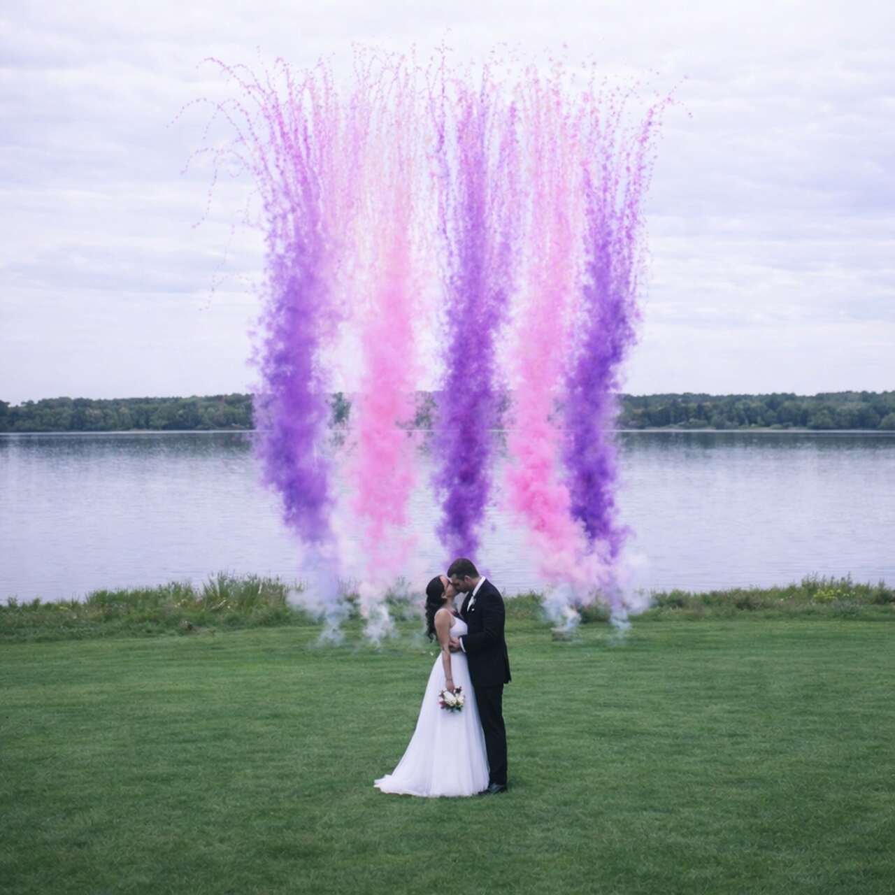 Kolorowe miny dymne, wesele, plener, efekt zdjęciowy
